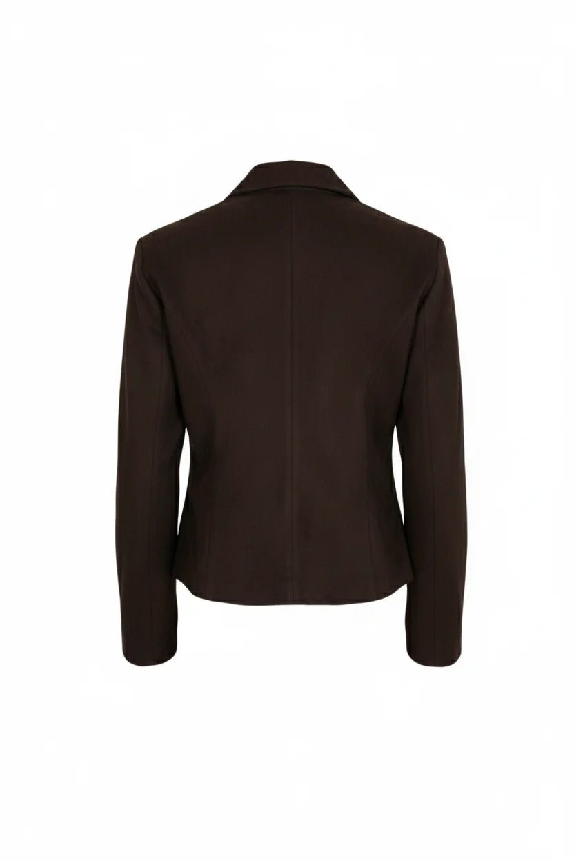 El modelo Ruth posee un fit estructurado con una longitud que se asienta de manera favorecedora sobre la cintura. Cuenta con puños cerrados y costuras de carga que definen los hombros, proporcionando una silueta arquitectónica cómoda. Es una pieza técnica de peso medio, diseñada con acabados internos de precisión y un tejido elástico que se adapta dinámicamente al cuerpo.