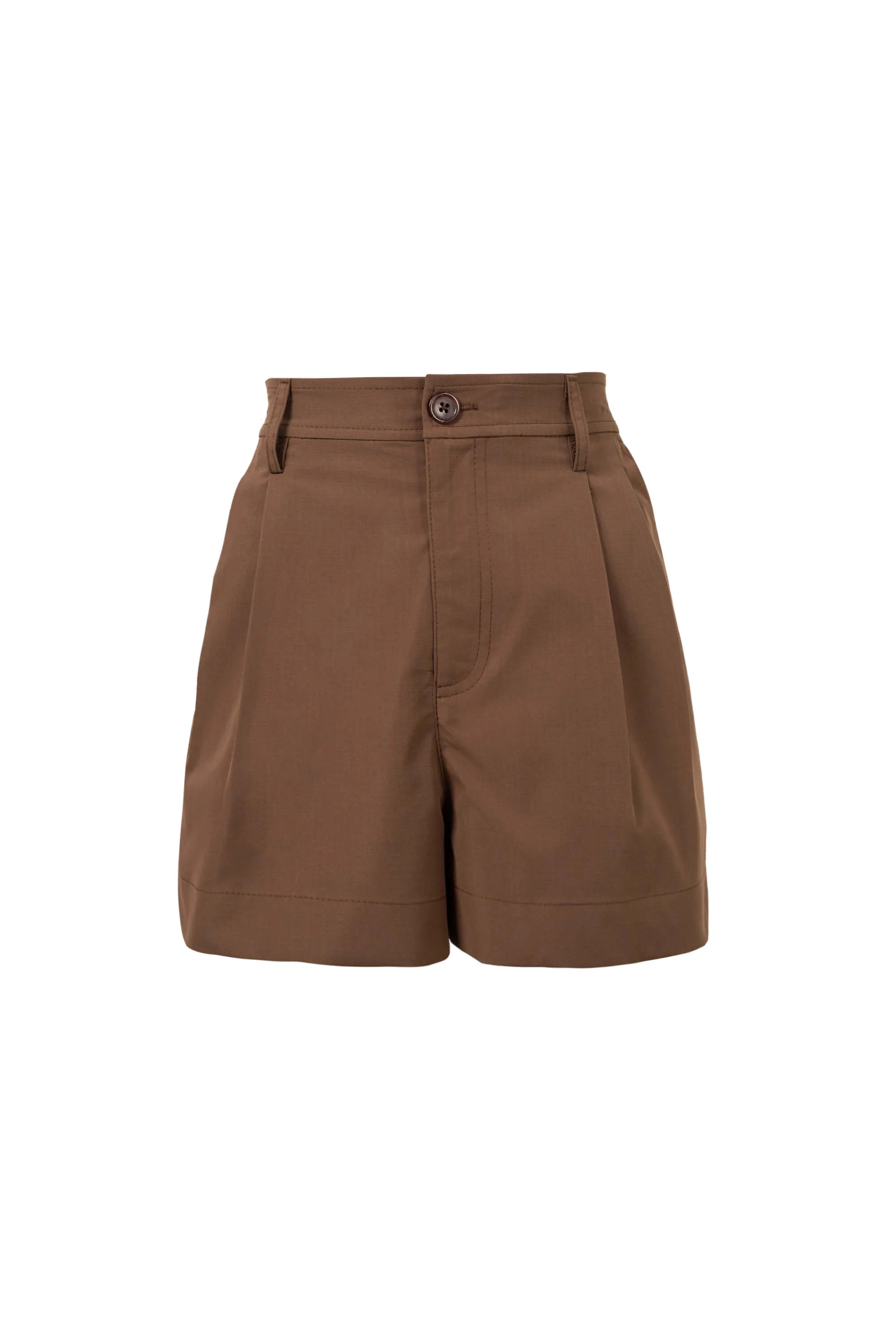 Shorts beige de tiro alto con pinzas y diseño estructurado. Una prenda fresca y versátil que combina comodidad y estilo refinado, ideal para looks casuales y elegantes en climas cálidos