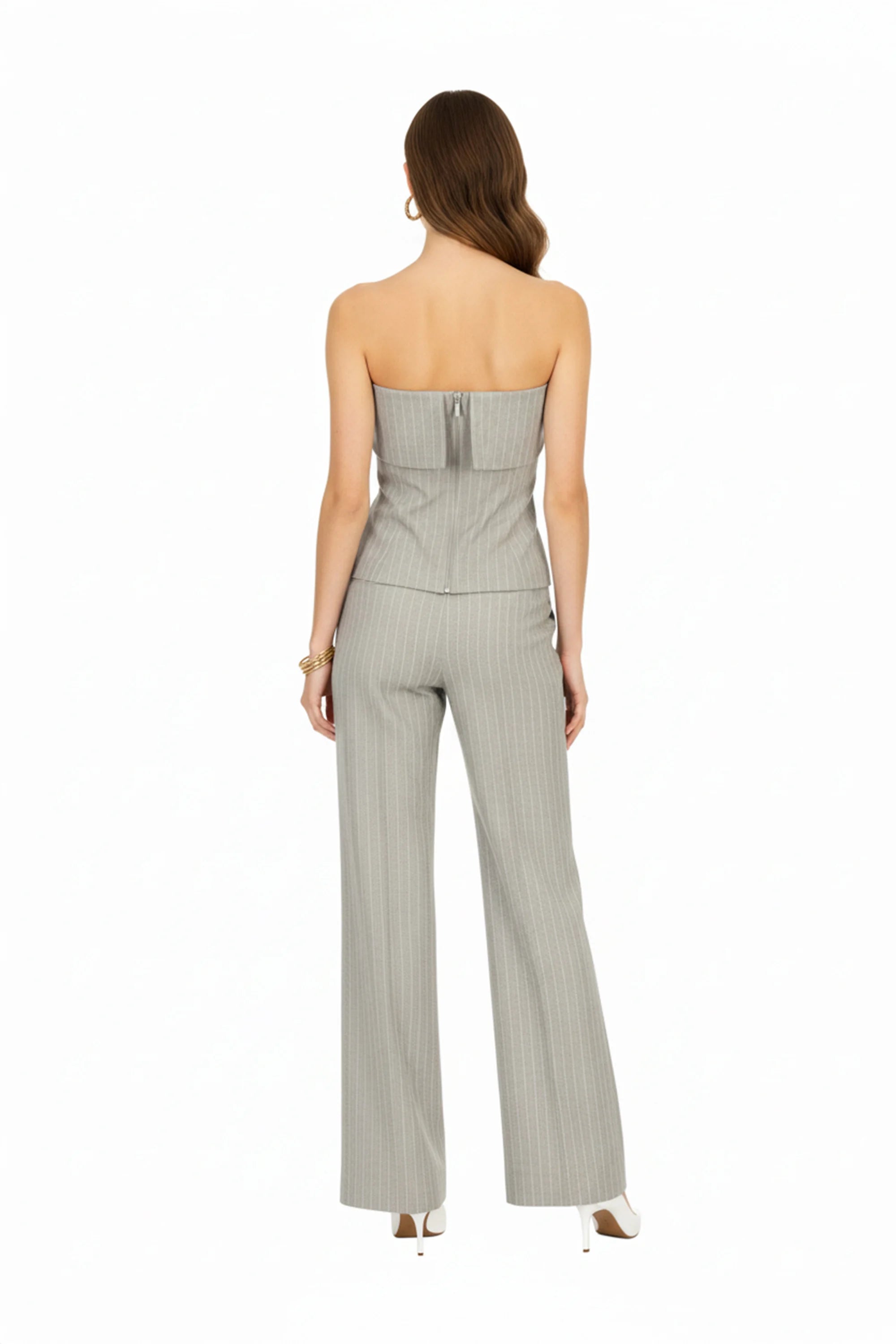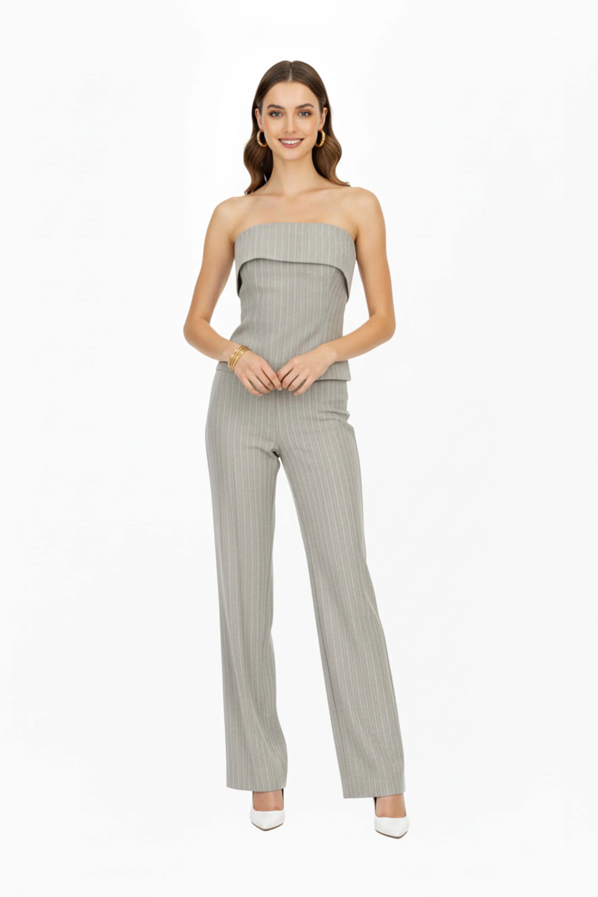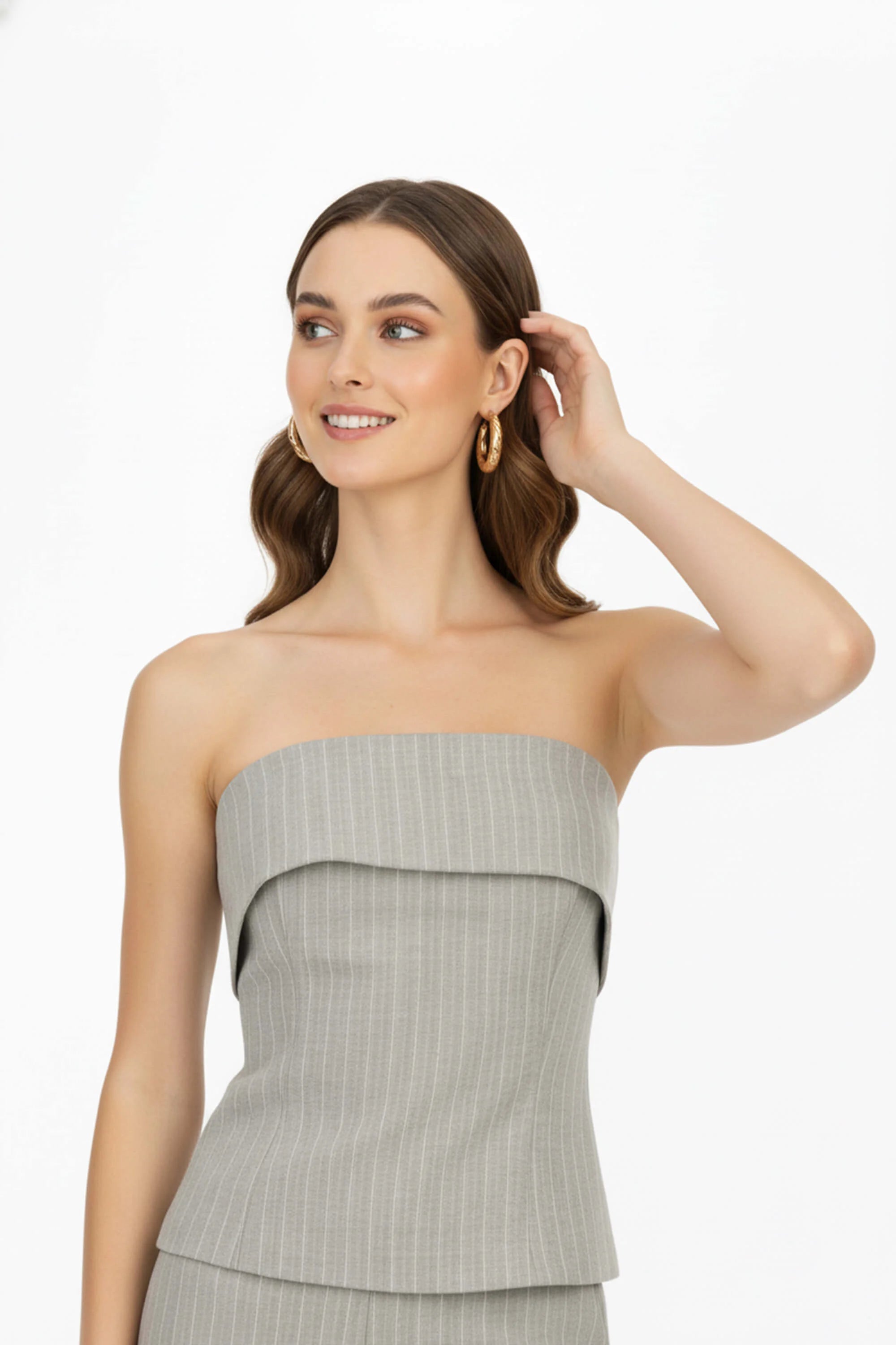 El top strapless a rayas es una pieza pensada para mujeres que buscan elegancia y modernidad en un mismo diseño. Su silueta minimalista resalta la feminidad de manera sutil, mientras que el patrón de rayas verticales estiliza la figura y aporta un aire contemporáneo.