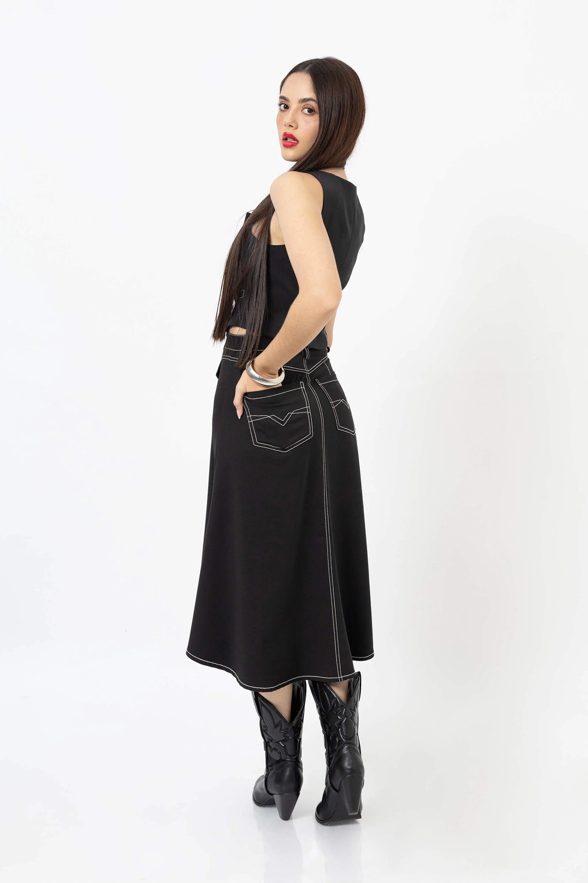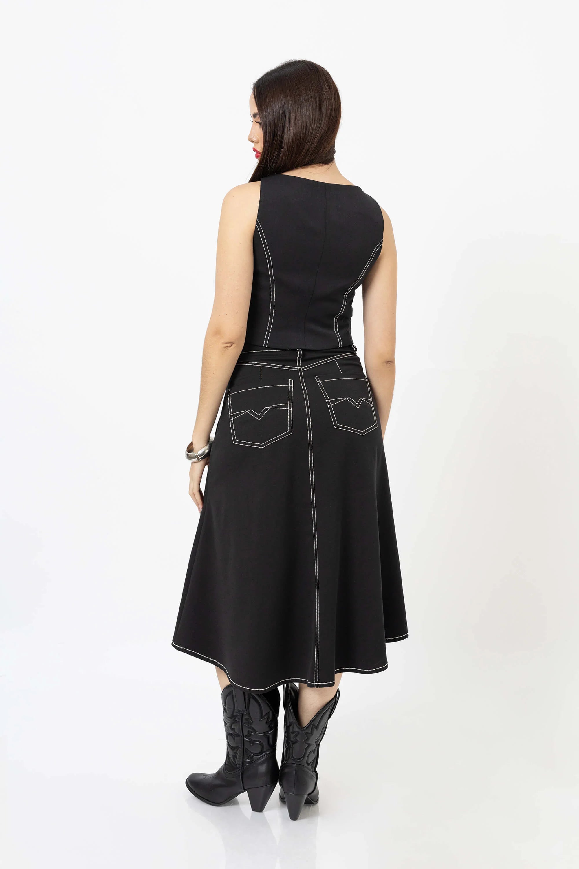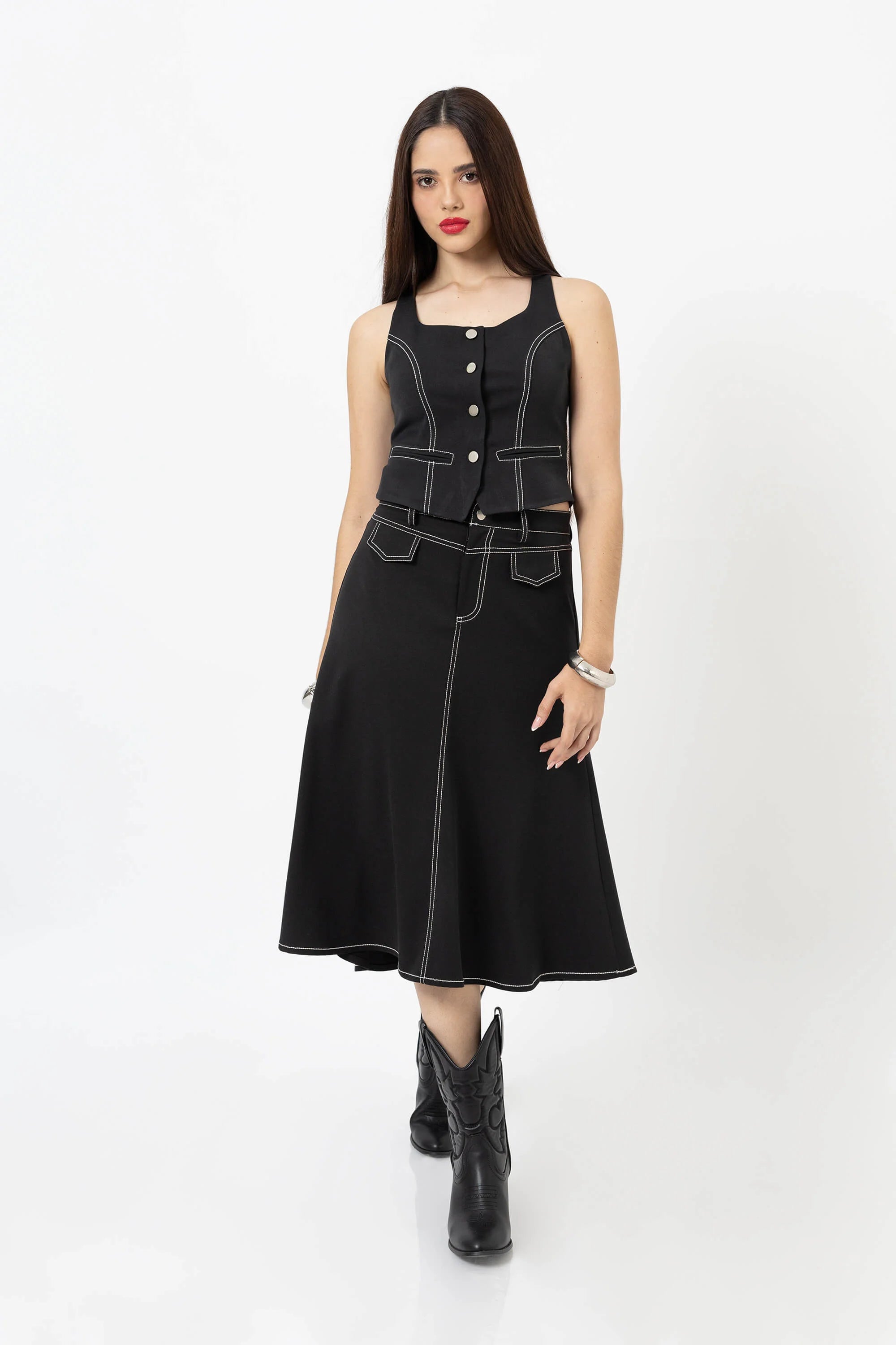El top escote cuadrado con bies tipo chaleco es una prenda que reinventa la sastrería femenina con un aire moderno y versátil. Inspirado en la elegancia atemporal de los chalecos clásicos, este diseño destaca por su escote estructurado y líneas con bies contrastante, que estilizan la figura y le otorgan un carácter sofisticado.