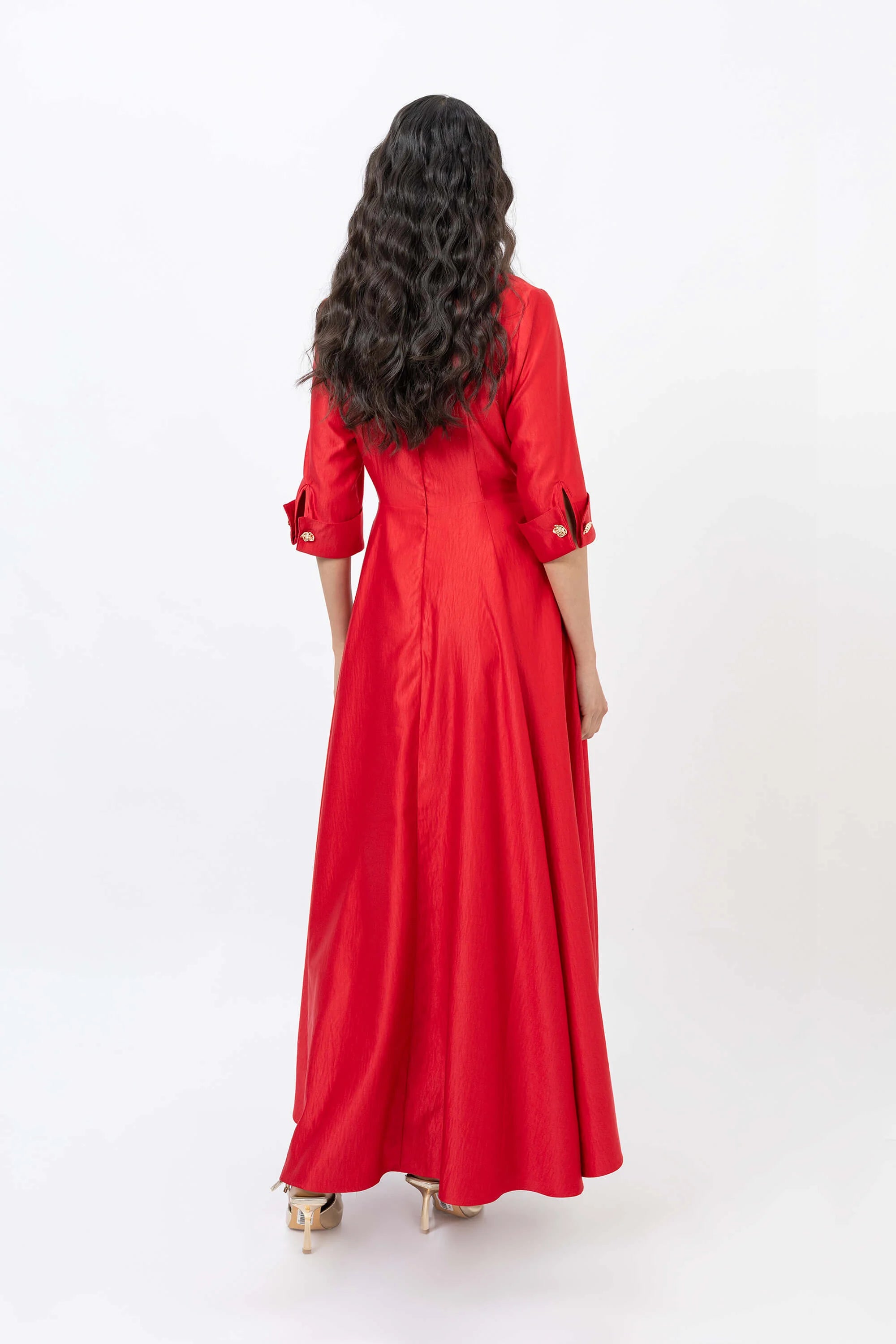El modelo ofrece un ajuste estructurado en los hombros y el torso que se entalla mediante el lazo ajustable, permitiendo una silueta personalizada y favorecedora. Cuenta con una falda de gran amplitud que proporciona un movimiento imponente al caminar. Los detalles de alta costura, como los acabados internos pulidos y el herraje dorado minimalista en el botón superior, lo convierten en una pieza ideal para galas, bodas o eventos de etiqueta que exijan una elegancia clásica con un toque moderno.