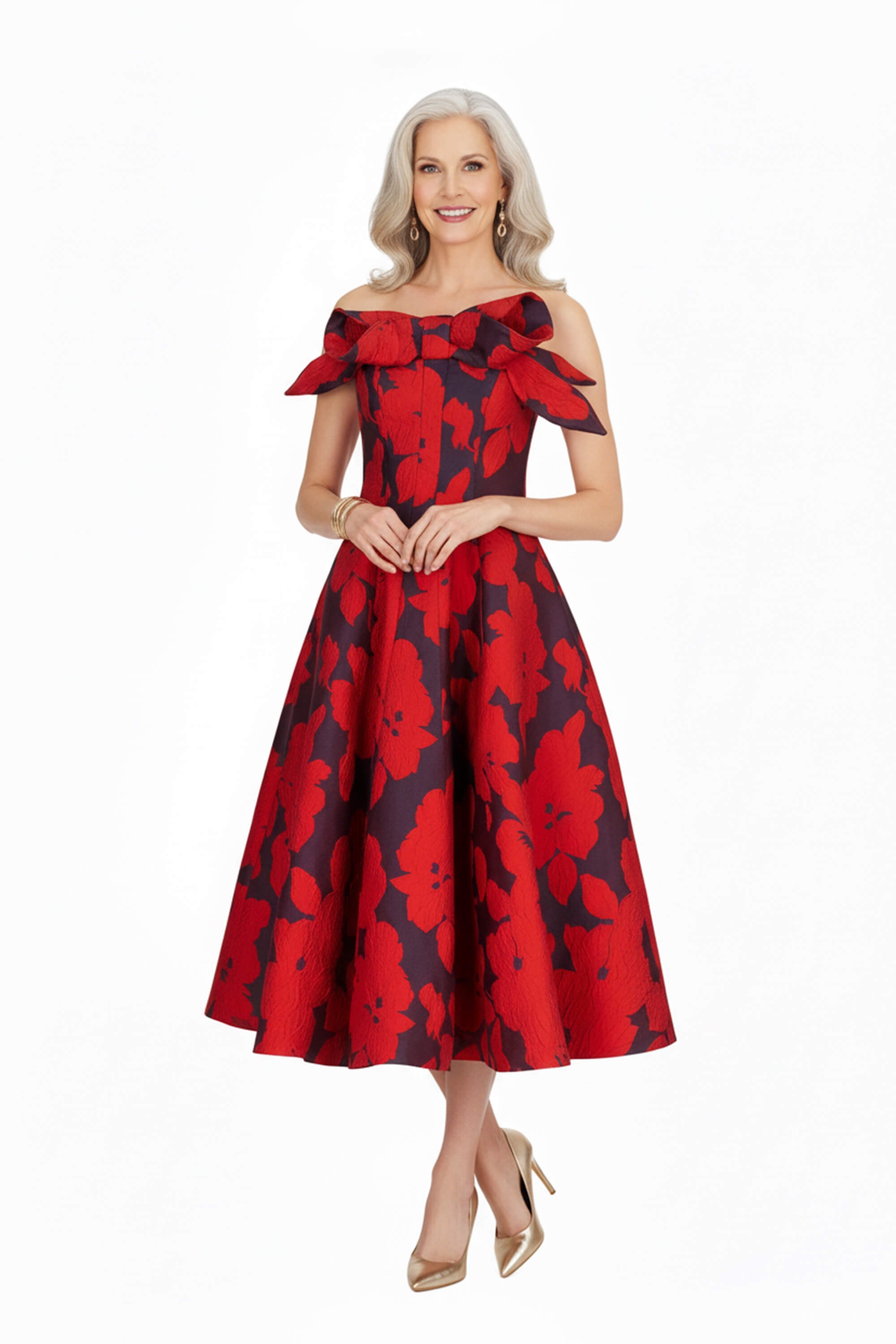 Este vestido strapless con cortes estratégicos y un delicado moño al frente celebra la feminidad con una silueta envolvente y un aire de sofisticación natural. Su diseño realza el busto y define la cintura, mientras la falda con volumen fluye con elegancia en cada paso.