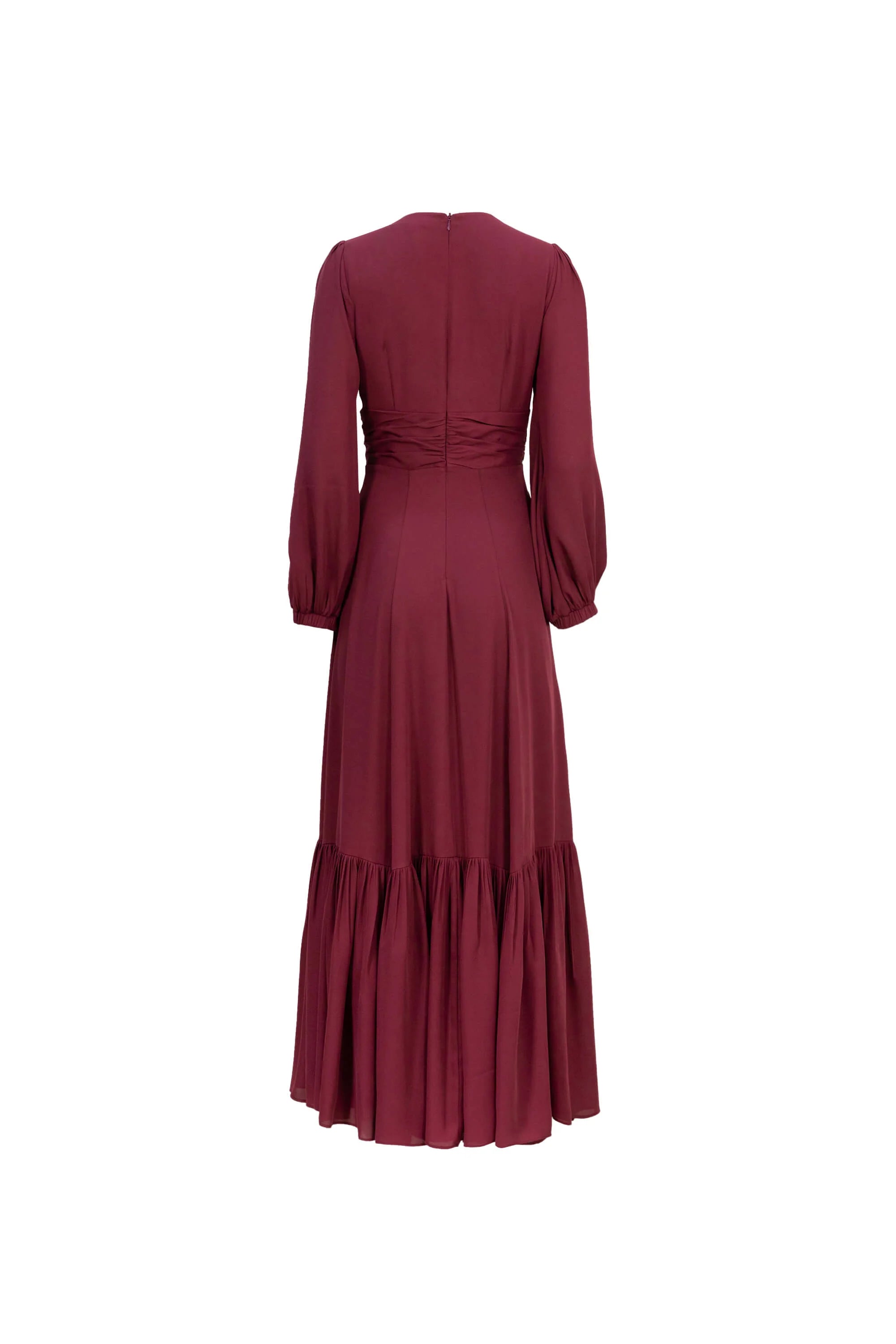 Vestido maxi con olán en ruedo y manga larga bishop | Reina Díaz