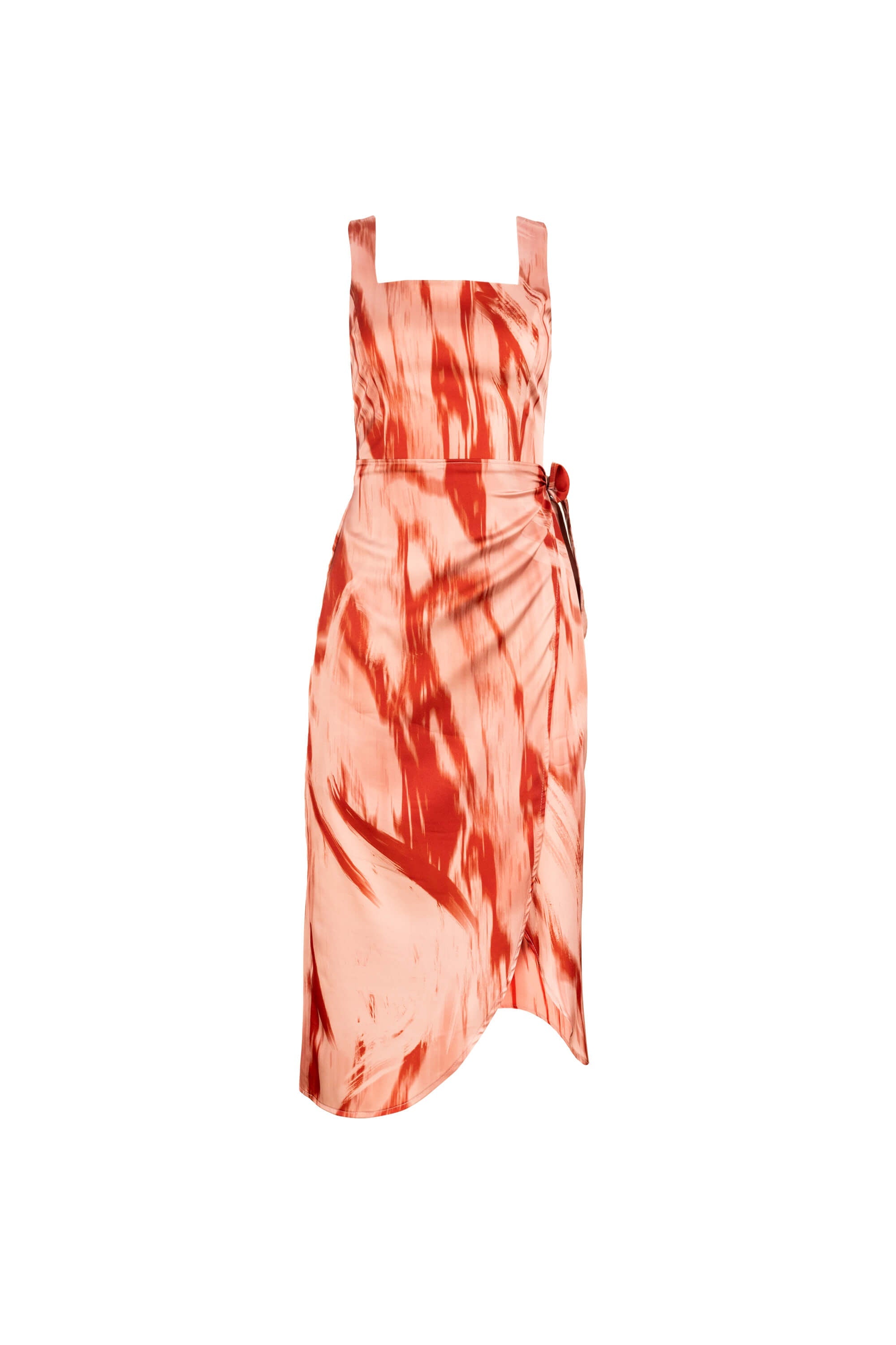 Vestido midi viscosa tirante ancho, escote cuadrado