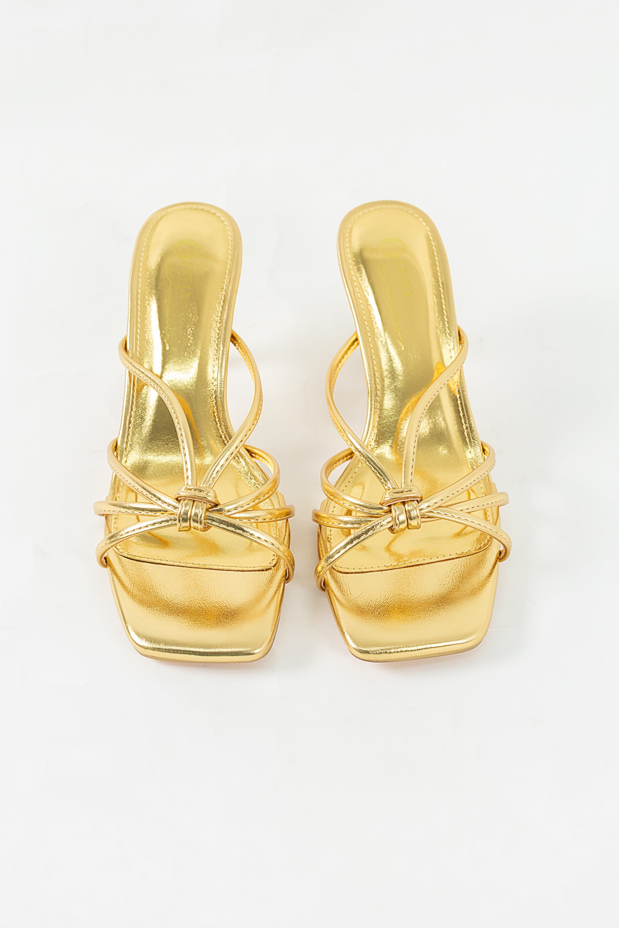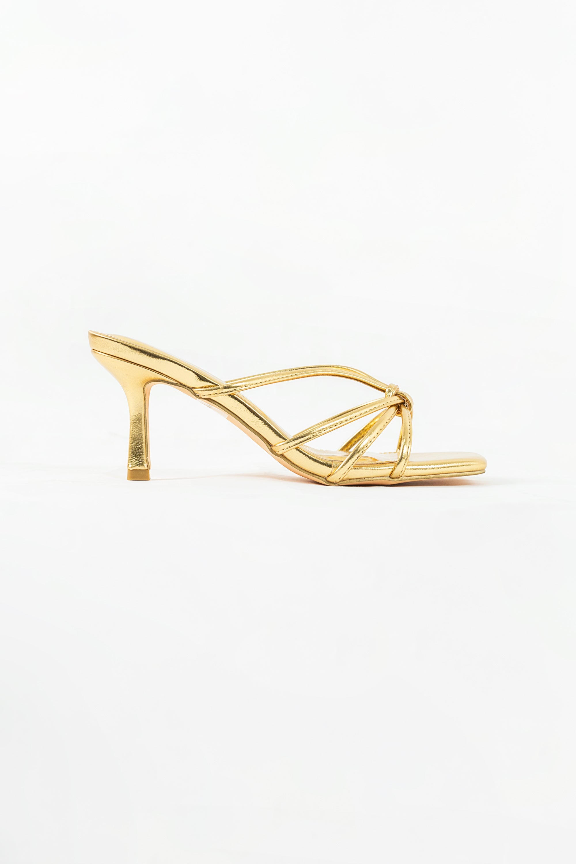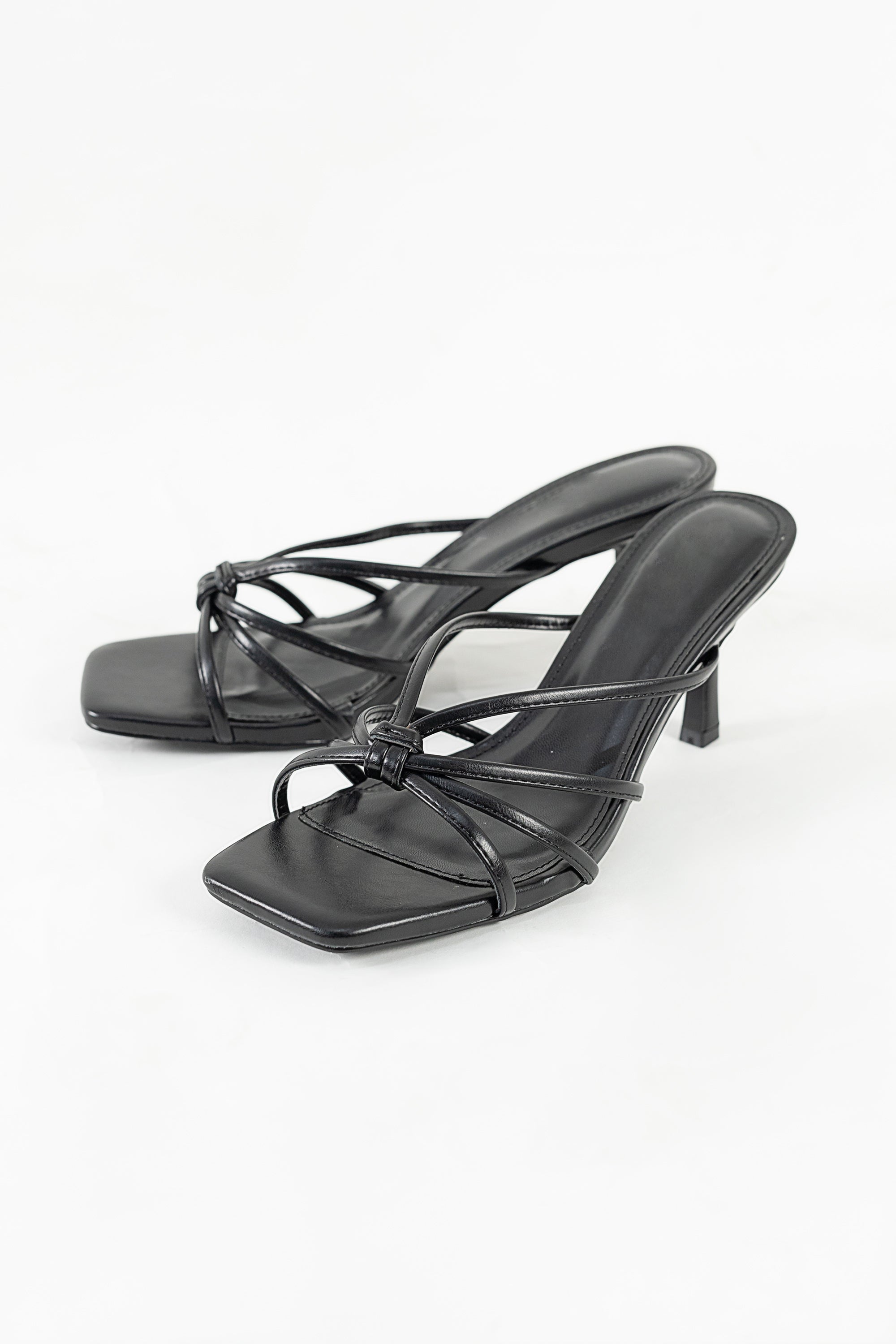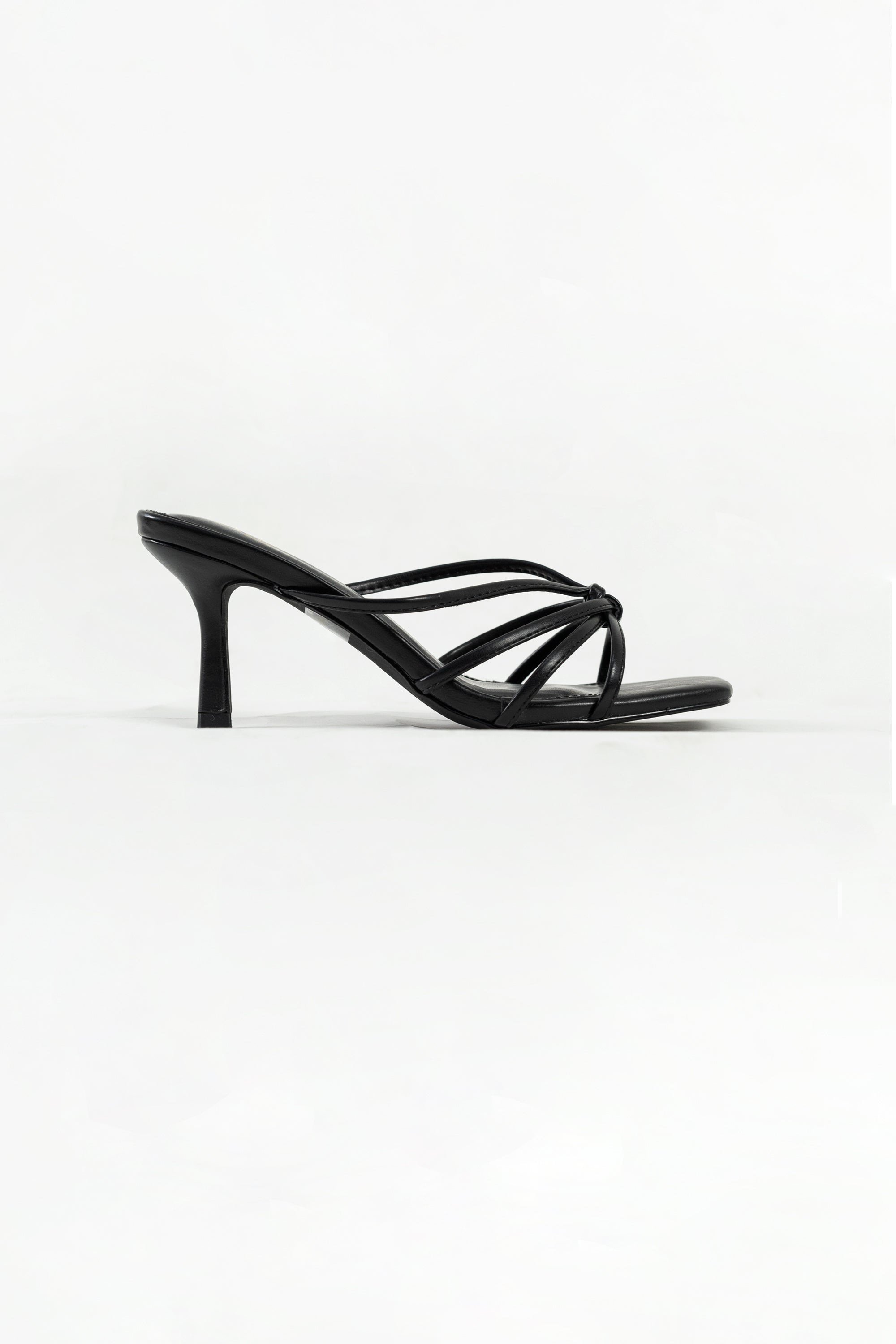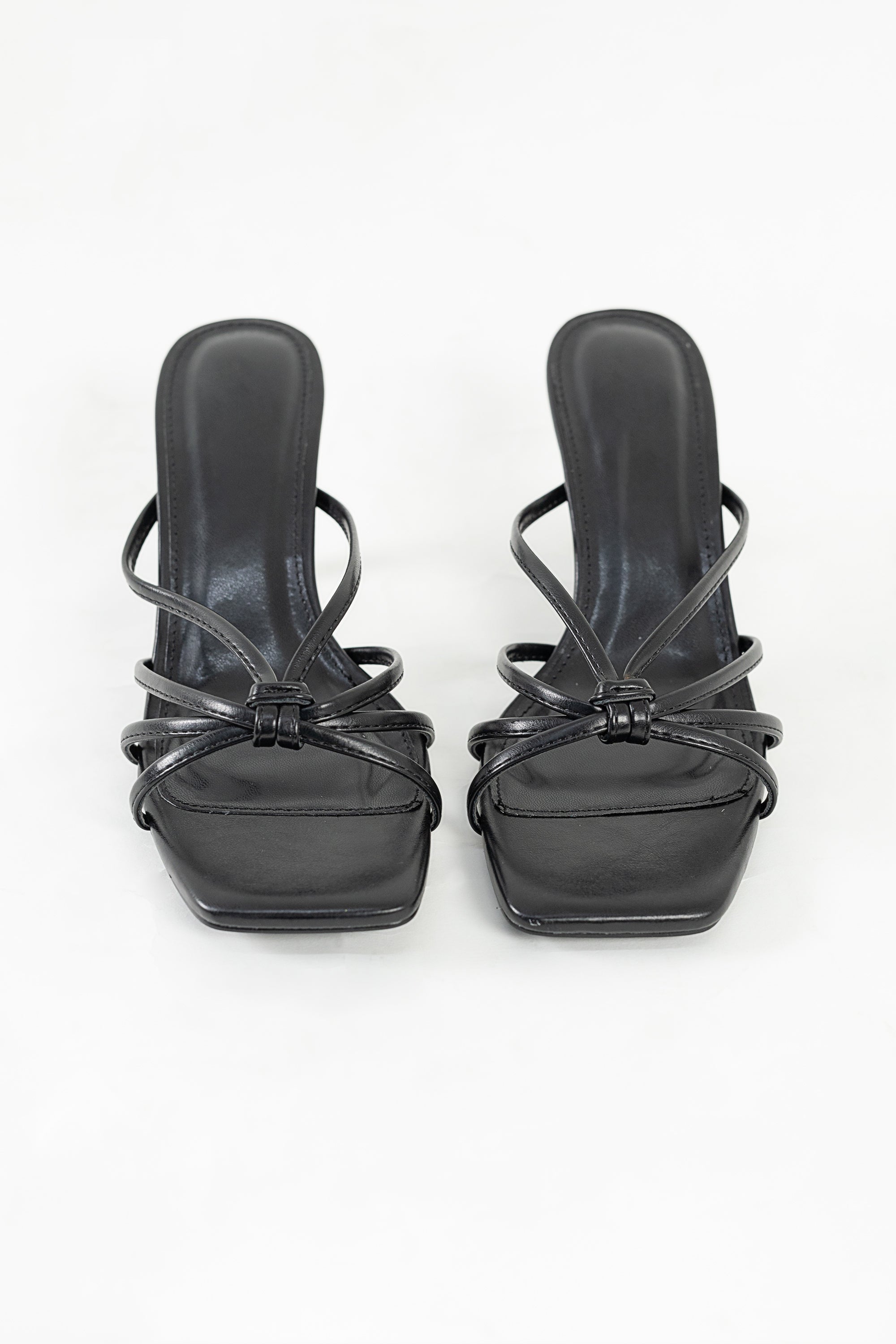 Sandalia de tacón bajo con puntera cuadrada y tiras cruzadas al frente